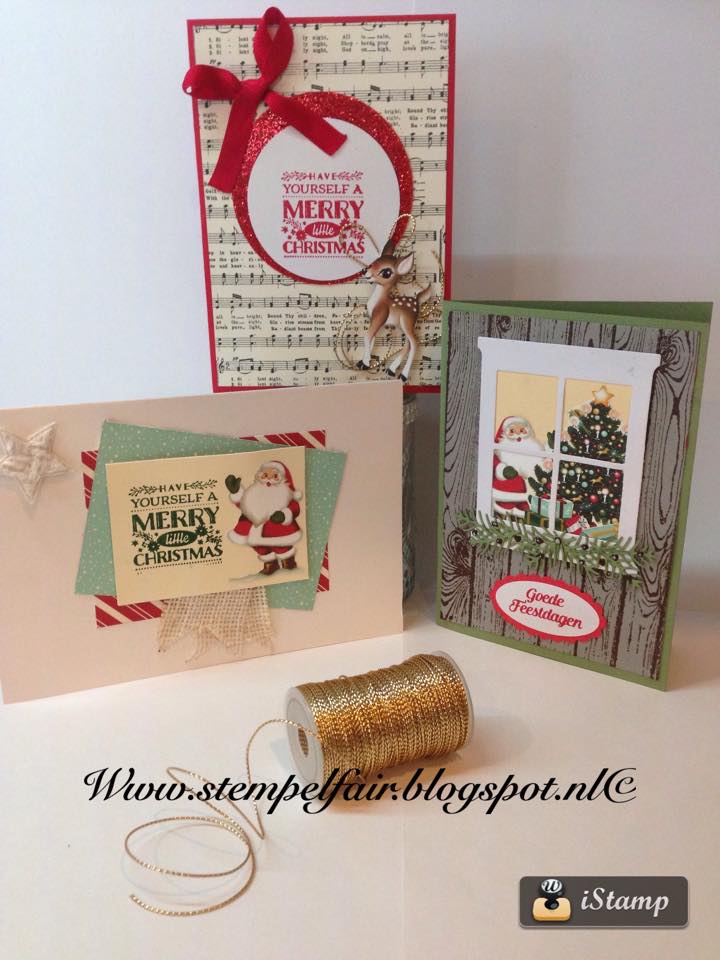 ik heb 3 verschillende kaartjes gemaakt. Bij de ene het papier gebruikt al achtergrond en de ander een specifieke afbeelding uitgeknipt. Als stempel heb ik er 1 gekozen uit de Cozy Christmas stempelset in de kleur Real red. Bijna alle matriaalen zijn van Stampin'Up en zijn via mij te bestellen door een email te sturen naar kermisgirl@hotmail.com met daarin de producten die je wilt hebben. Rechts vind je de huidige catalogus. De Retired list is ook uit, hierin staan de producten uit de herfts/winter catalogus die volgend jaar niet meer terug komen. Dus zie je nog wat staan wacht dan niet te lang met bestellen. Bestellingen geplaatst na 13 dec worden waarschijnlijk niet geleverd voor de kerstdagen!